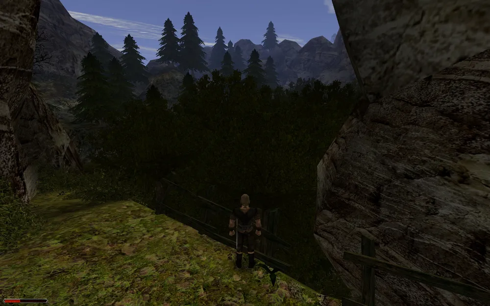 Дальше, по выходу из рощи на основную тропу, нас ждет разговор с еще одним старым знакомым – Ковалорном, только что перебившим целую свору гоблинов. Но в нем нет ничего особенного для этой темы... только не забудьте заглянуть на утес за его лагерем – там можно найти и золото, и несколько свитков. И ни в коем случае не пускайтесь с Ковалорном в атаку на бандитов сразу же. Сперва пройдите дальше и поговорите с тем, что поджидает героя возле их пещеры. Этот диалог, как и многие другие в Готике, может продлиться минут десять, так что подробно описывать не буду – просто начните со строчки «я спустился с гор», старайтесь до последнего отказываться от его предложения и сообщите, что вы бывший каторжник из колонии. В итоге герой должен получить от этой беседы опыт, имя «Декстер», заплатив за него 15 золотых и картинку, со своей рожей. Предупредив бедолагу об опасности, получите еще опыт – тот убежит и прячется подальше от пещеры. Но и сейчас идти в атаку не надо. Дальше нас ждет ферма Лобарта.