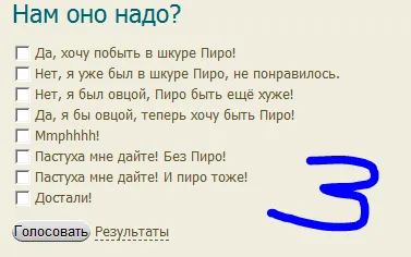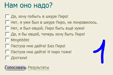 Если в опросе не выделить ни одного пункта, нажать «Голосовать», мы увидим,как голосуют другие люди, а если обновить страницу - сможем проголосовать сами.