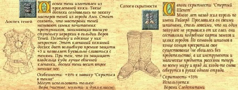 Вор первой части велик необыкновенно: хотя бы потому, что при повышении уровня сам решает, в какое умение вложить большинство очков. Если оно развито до предела, то к его услугам зелья, превышающие этот предел, и предметы, улучшающие скрытность.