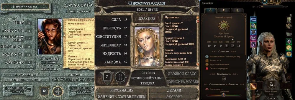 Создать мультиклассового героя можно в каждой из игр, но есть два существенных отличия: в первой всего двадцать два мультиклассовых персонажа, в третьей их столько, сколько вы захотите (почему-то только со второго уровня сложности игры), что порой вызывает лёгкое недоумение. В первой мультикласс определяется сразу, во время генерации героя, его уровни повышаются поочерёдно; в третьей – после достижения первого уровня развития, распределение мультиуровней можно контролировать, причём никаких ограничений по выбору второй «профессии» нет.