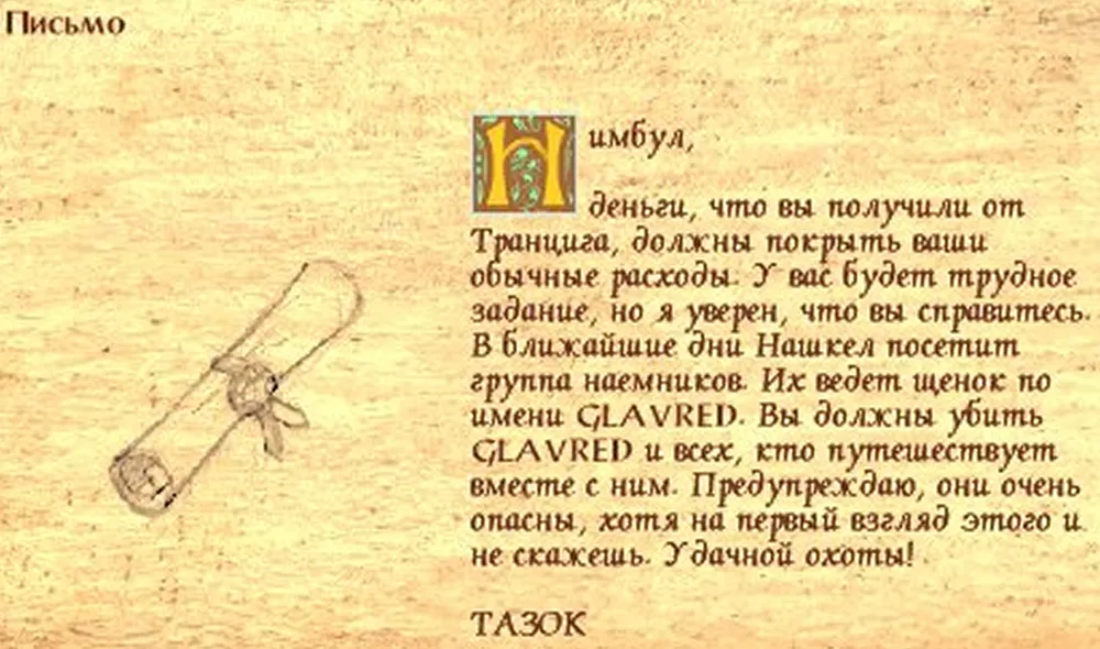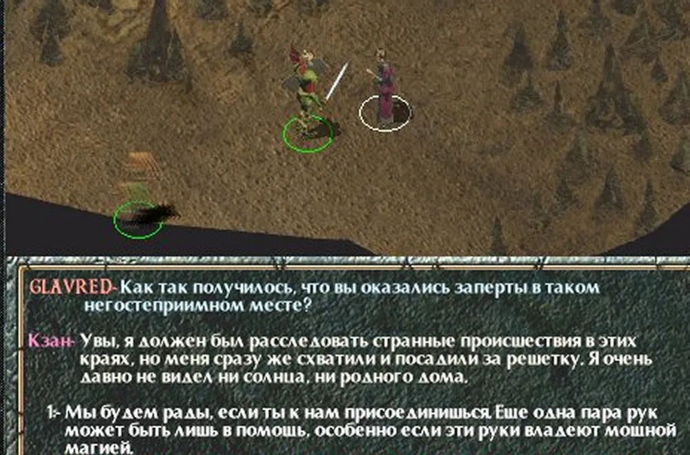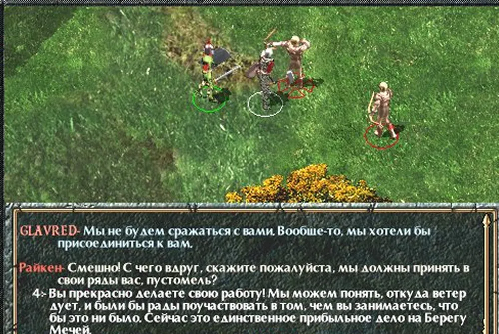 К слову, за время путешествия герой несколько раз разговаривал с купцами и дворянами, упоминавшими города Торила, знакомые воину по предыдущим заэкранным путешествиям. Причём большинство из встреченных вели себя заносчиво и даже нагло. Сопартийцы хмурились, накладывали стрелы на тетивы, многозначительно поигрывали оружием; но Glavred успокаивал их жестом, так как хорошо знал: убийство хамов приведёт к падению репутации группы и повышению цен в магазинах…
