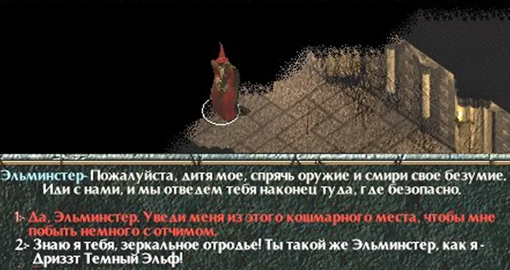 В качестве трофея пара получила лучшее оружие для клирика; предстояло озаботиться поисками меча воину. Впрочем, его не нужно было искать – на локации чуть южнее героя ожидала встреча с Дриззтом…