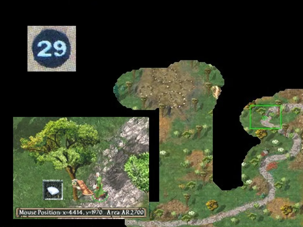 Не зная точного расположения тайников, их почти невозможно отыскать. Нажмите клавишу «Д» (или «L») при наведённом на землю курсоре; в диалоговом окне появится координатная сетка. В данном случае алмаз находится под Х 4419, Y 1955.