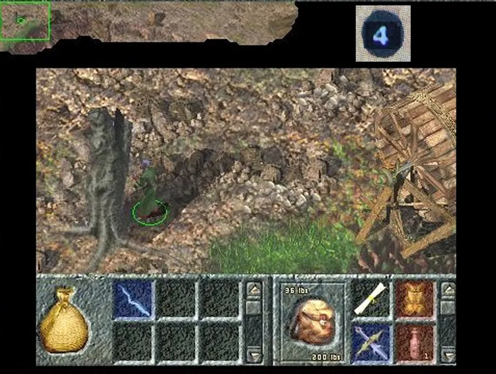 Что дальше? Да поиск очередного клада, что же ещё? Поиски последнего вообще не взывали проблем: трудно пройти мимо единственного засохшего дерева в углу района. И вот – наконец-то! – первое более-менее серьёзное магическое оружие: жезл холода. Правда, золота по-прежнему не хватает для покупки жезла огня. Значит, нужно искать ещё.