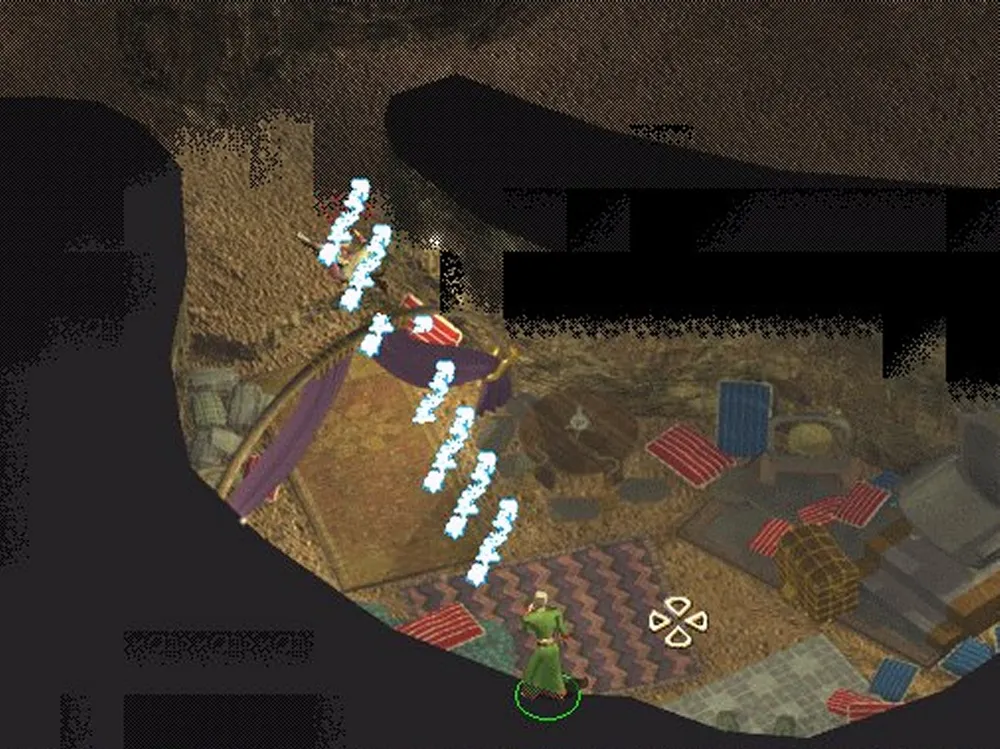 В лагерь бандитов можно проникнуть двумя путями: просто перейти из района №38; придётся сражаться с ними. Или отыскать в тридцать первом районе одного из их предводителей, Райкена. Если во время разговора заявить о желании присоединиться, то героя доставят в мирный лагерь; однако предстоит испытательный поединок с Тазоком. (Причём последнего можно убить: запас магических стрел, масло скорости или заклинание «Ускорение» и не подпускать близко.)