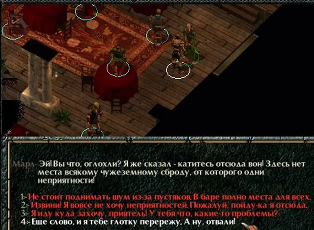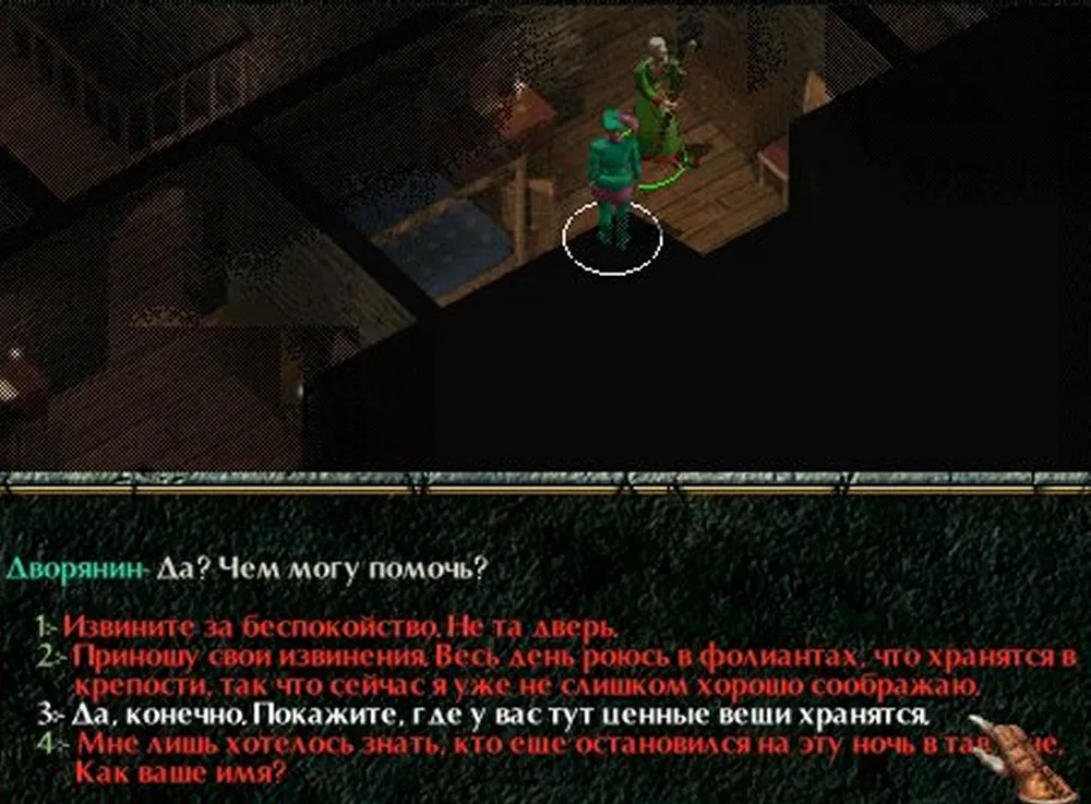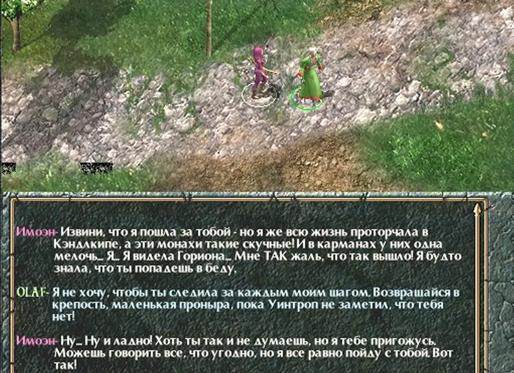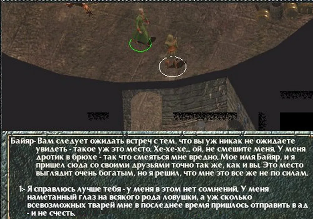 Увы, в лицензионной версии игры после совместной победы над гноллами Дриззт ни в какую не хочет разговаривать с героем; просто бегает туда-сюда. Зато это даёт возможность вернуться к нему позже, с большим запасом взрывающихся и бронебойных стрел. Но изредка отказываются беседовать торговцы и квестовые персонажи! Сохраните игру, загрузите – диалог состоится.