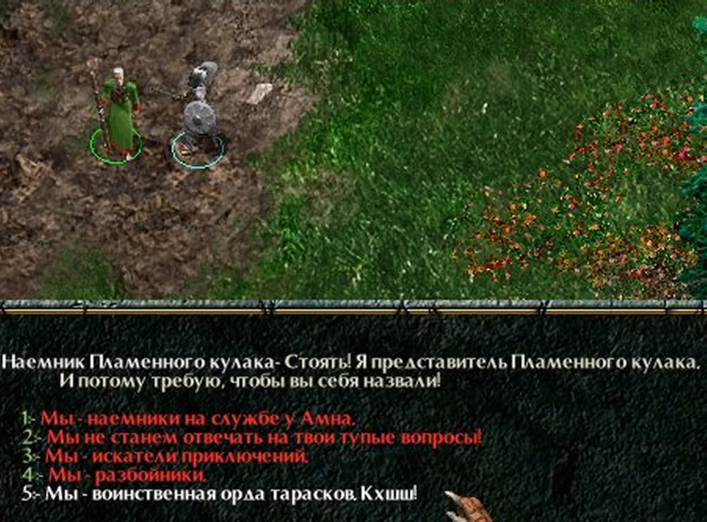 Разумеется, можно было решить дело при помощи оружия, но герой знал, что в городе находится штаб «Пылающего кулака», и что «силовое» решение вопроса наверняка повлечёт появление сильнейшего карательного отряда, а это не входило в его планы. Раз уж рядом находится башня мага Рамазита, почему не забрать у него книгу, повышающую интеллект? Согласился выполнить задание, победил Рейджфаста, отпустил нимфу и забрал книгу у совершившего ошибку Рамазита: сам виноват, зачем было пугать героя молнией?