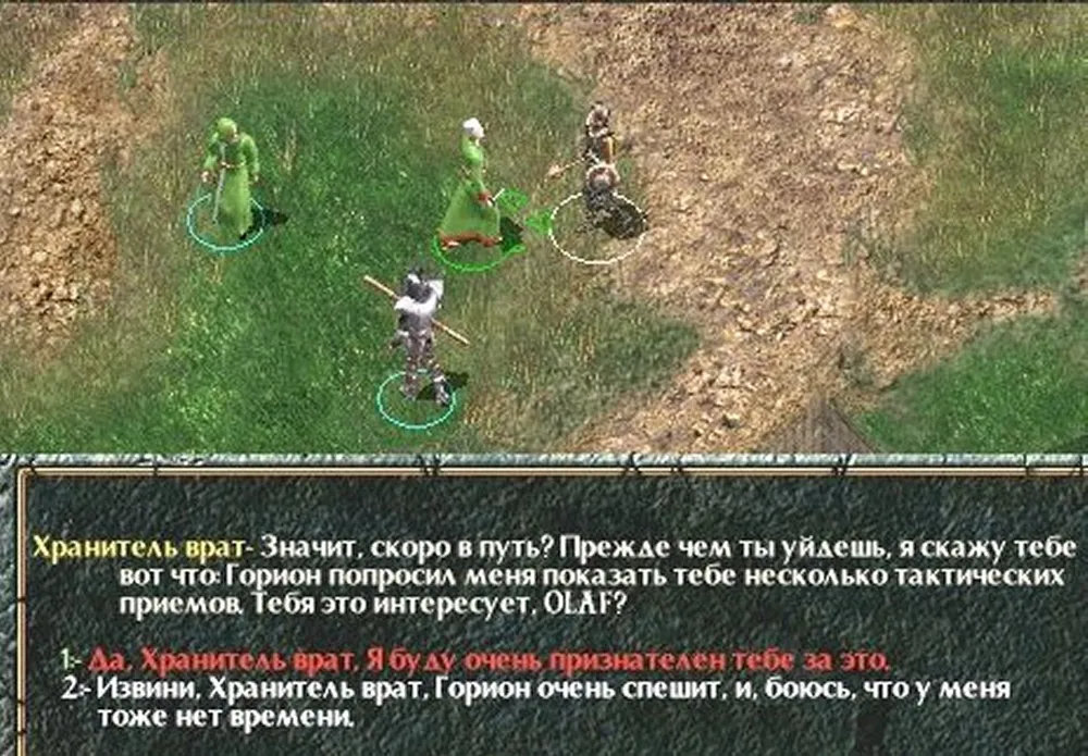 Возгордившийся маг вышел из ночлежки, победно посматривая по сторонам, и едва не ввязался в ещё один поединок: хранитель врат предложил ему командовать отрядом! Да что же это делается – опять «союзники»?! Мгновенно взбеленившийся герой выхватил кинжал, уже дважды принёсший ему удачу, замахнулся, и… стал чистить клинком свои ногти, сделав вид, что не замышлял ничего плохого: проходивший мимо стражник, более всего похожий на ожившую стальную статую, остановился и многозначительно постучал посохом в землю.