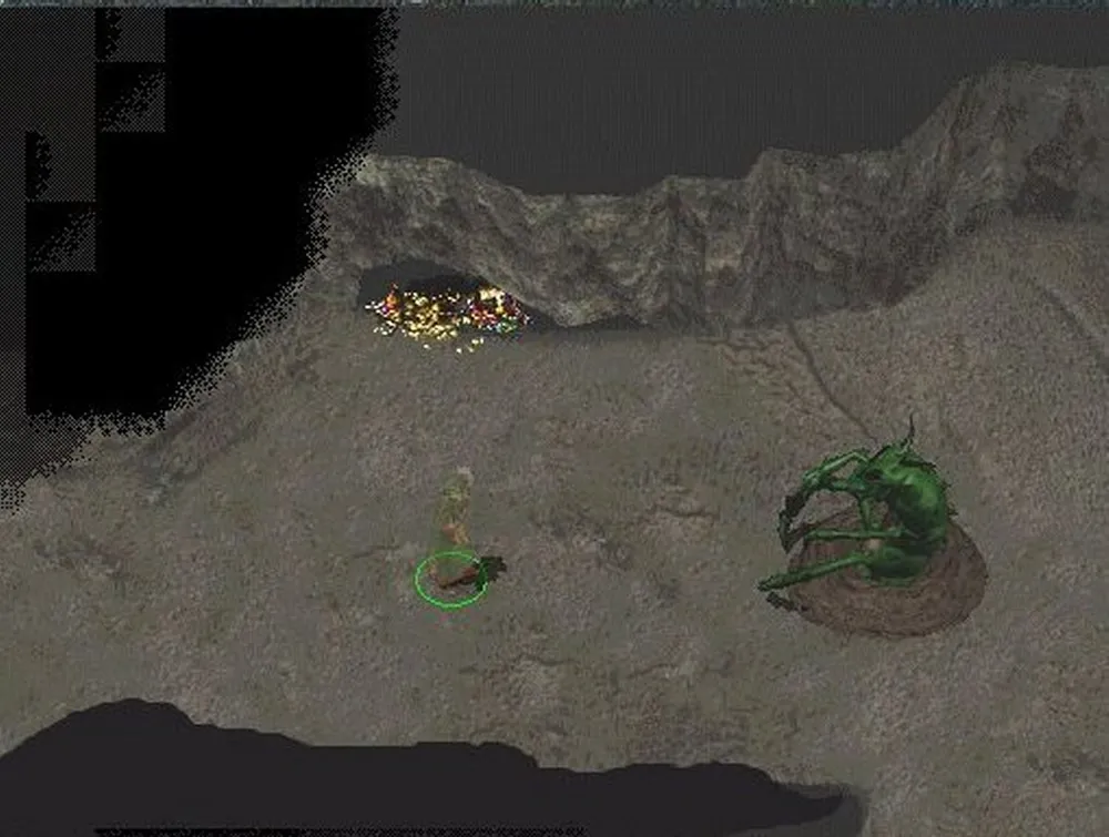 Идти туда? С одним жезлом? Разбойники не ходят строем, пока запустишь огненный шар в одного, пять других утыкают стрелами. Да и жезла пока нет… Значит, нужно добыть! Невидимый герой спустился в пещеру анкхег и двинулся вдоль её верхнего края. Вот и сокровища! Стоило начать опустошать тайник, как неподалёку с грохотом разверзлись земля и показалась скрежещущая жвалами мерзкая зелёная тварь, закованная в непроницаемый хитин. Анкхега! Чудовище отклонилось назад, готовясь плюнуть в Олафа смертоносной кислотой, но тот уже исчез из вида: успел произнести заклинание невидимости. Вовремя…