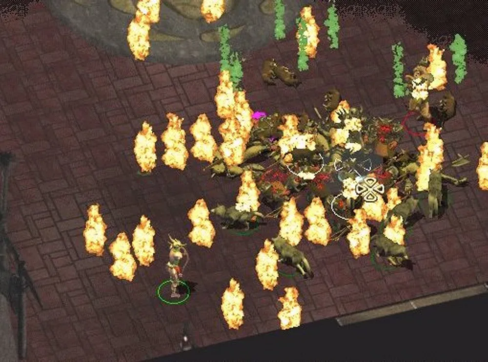 Преодолел лабиринт, вышел в подземелье и устроился отдыхать: идти дальше в защите, блокирующей работу жезлов было чистым самоубийством. Впереди притаился довольно большой и хорошо оснащённый отряд охотников за наградой; на этот раз - последний. Шар огня, враг активизировался. Призваны монстры, и в гущу завязавшейся свалки летят взрывающиеся стрелы: а что, удобно, враги стоят кучкой! Вот и всё, осталось только войти в храм для последней битвы.