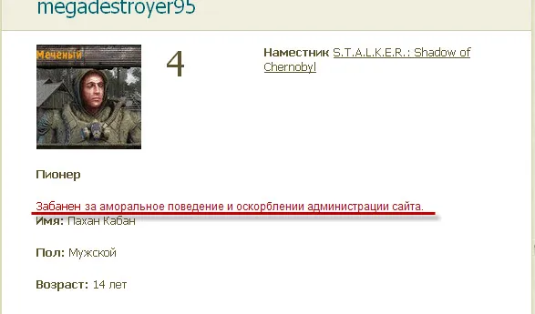 В ходе тестирования сайта появился первый забаненый пользователь, а именно наш герой megadestroyer95.