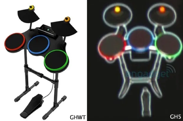 По данным Engadget в состав Guitar Hero 5 войдёт обновлённая версия ударной установки. Ребята с Engadget даже смогли раздобыть фото будущего аксессуара. И что же? Всё стало компактнее, блок управления переехал вниз, между ножками даже мелькает перекладина, на которую, может быть, будет крепиться педаль. Помимо этого на заднем торце будут располагаться три выхода - два для педалей и один для неизвестных пока науке целей.