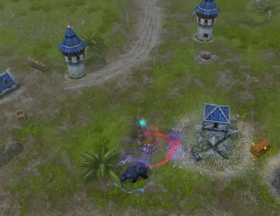 Медведь производит разведку, магические башни и заклинания разрушают строения.