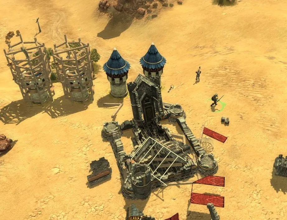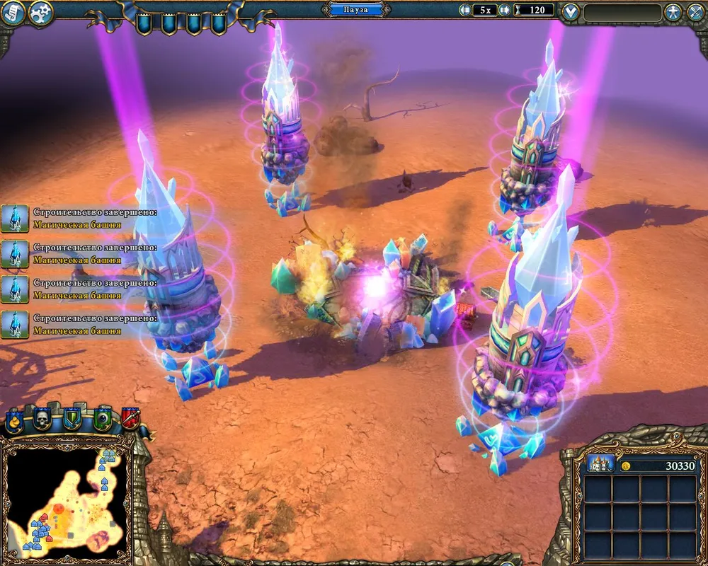 Строим башню максимально севернее замка — открывается территория торгового поста. Восточнее поста возводим ещё одну башню: она разрушит пирамиду минотавров.
