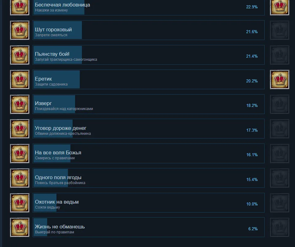 Можете сами полюбоваться на то, какие достижения предлагают получить разработчики.
