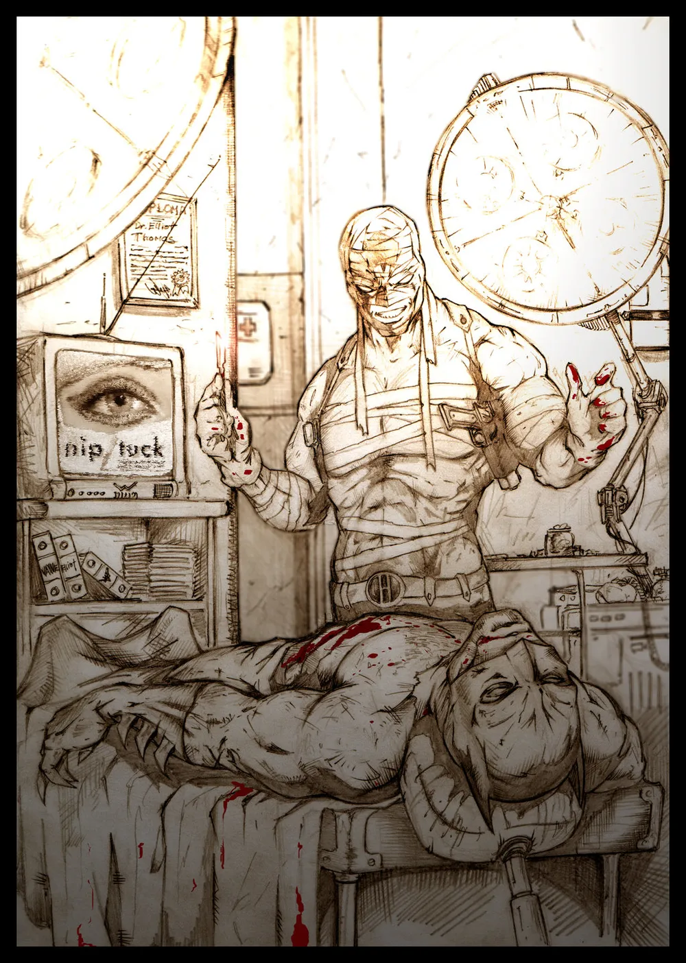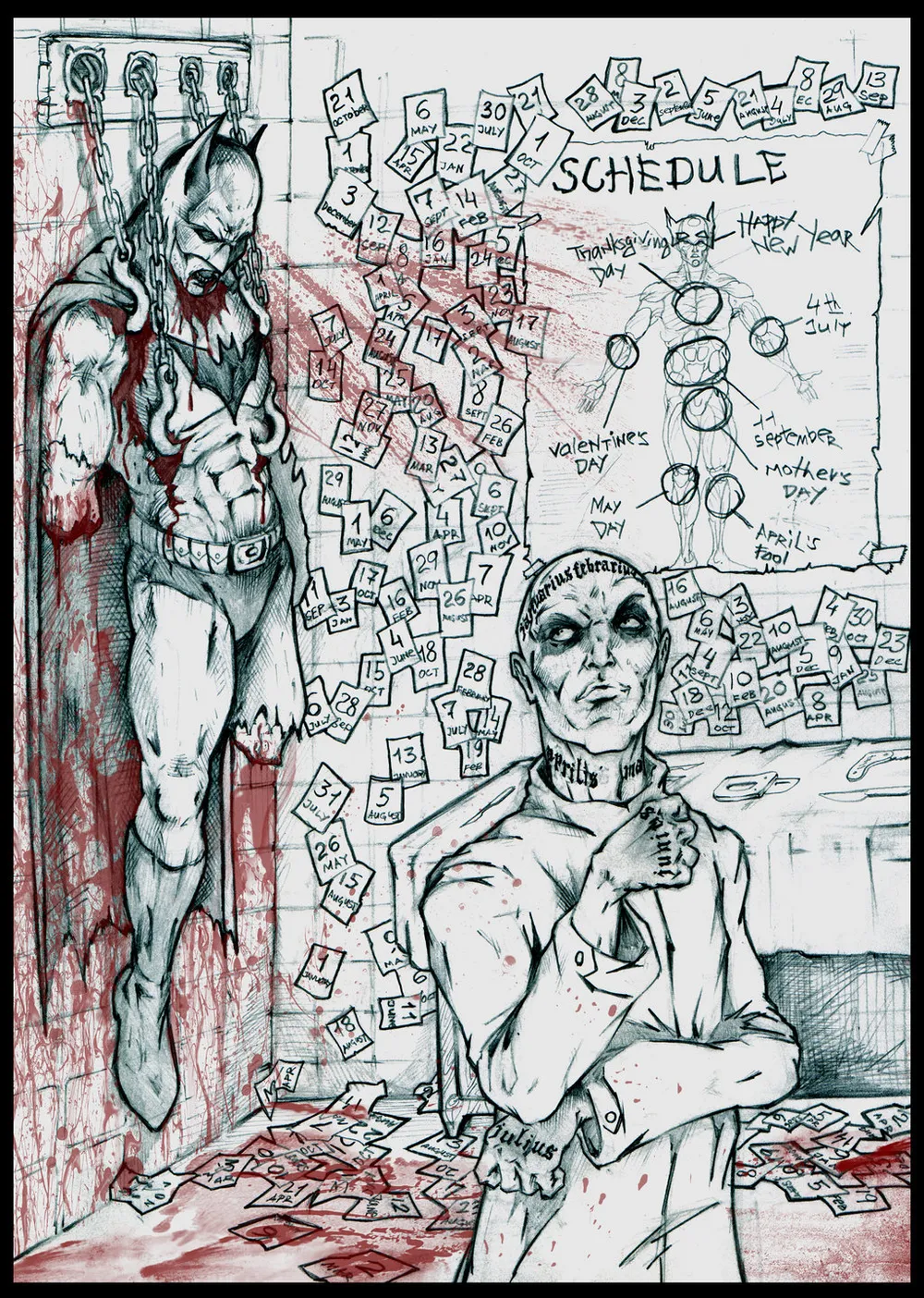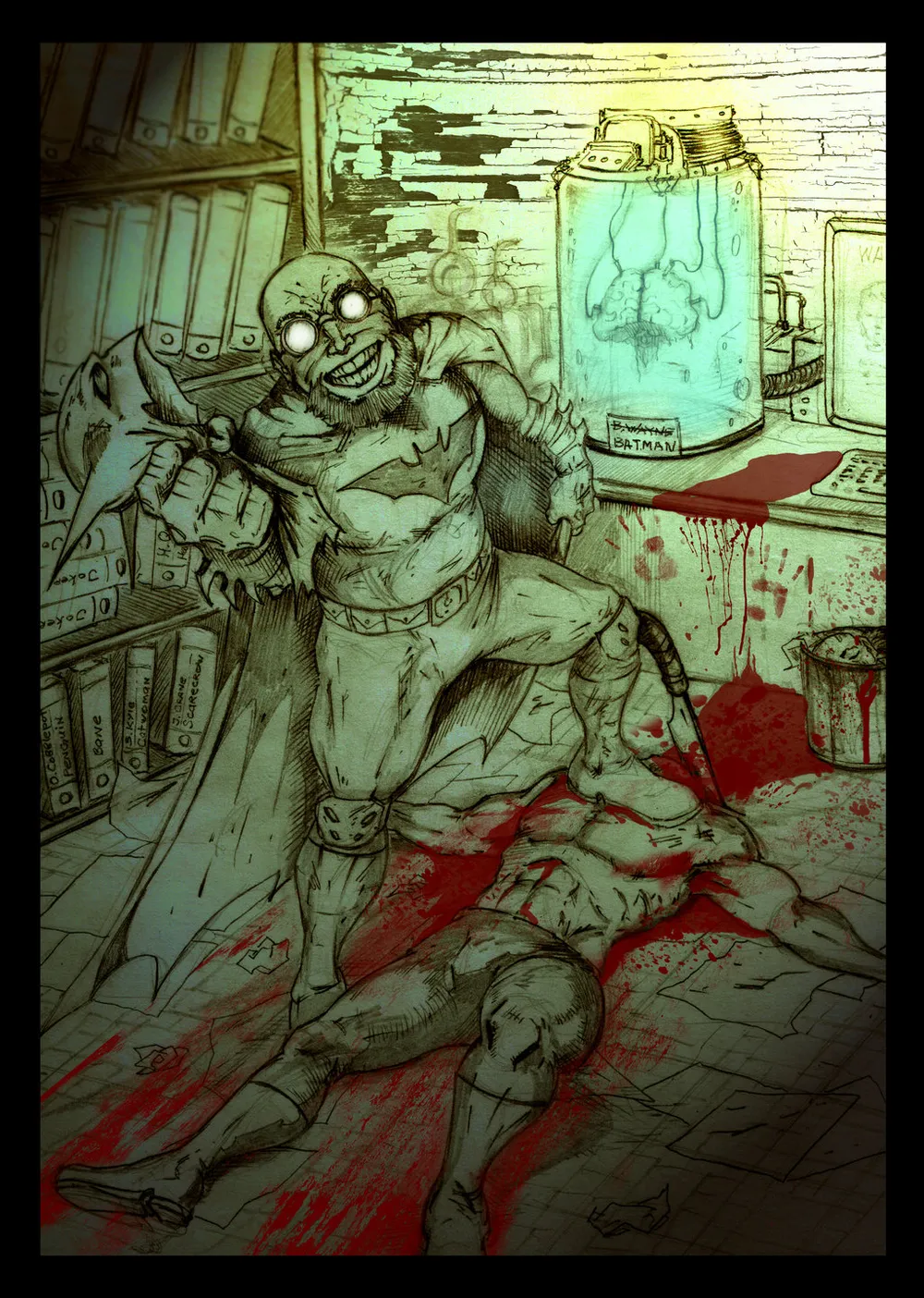 Чтобы вы не удивлялись нарисованному, я вас подготовлю :) На всех работах Брюс Уэйн изображен мёртвым и растерзанным. Заранее отвечаю на вопрос: автор НЕ НЕ ЛЮБИТ Бэтмена! совсем напротив. Ну, а вот я не люблю эти вступления длинною в вечность, смотрите сами. И НЕ ЗАБУДЬТЕ ЗАЙТИ НА ЕГО ДЕВИАНАРТ!