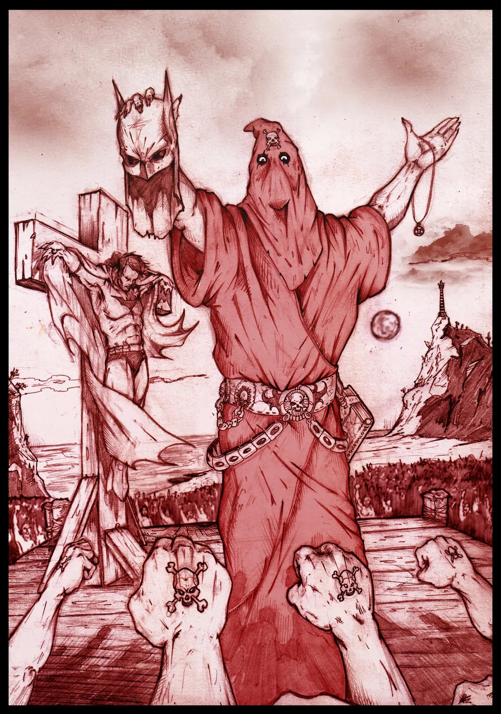 Публичное распятие кумира толпы перед другой, одержимой толпой.