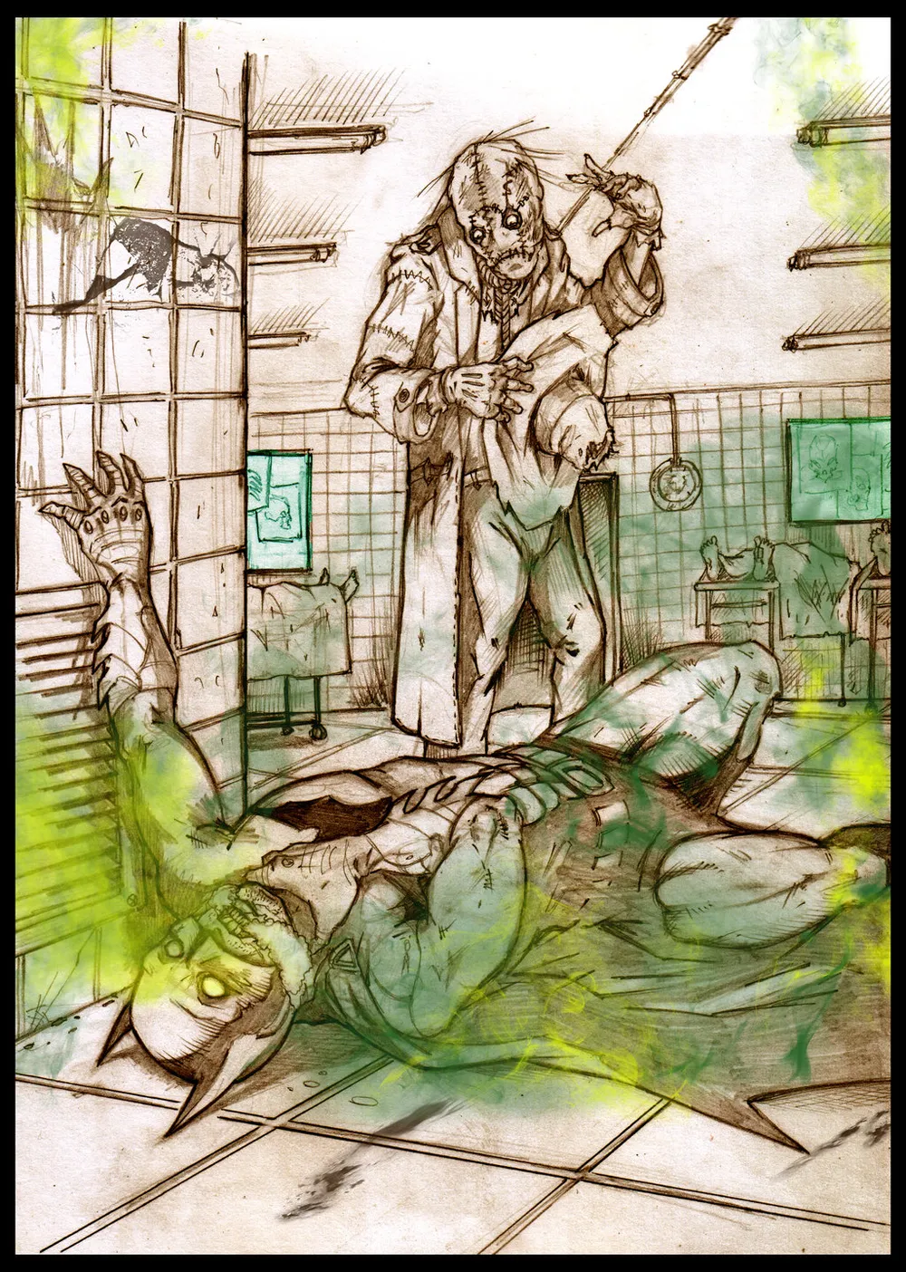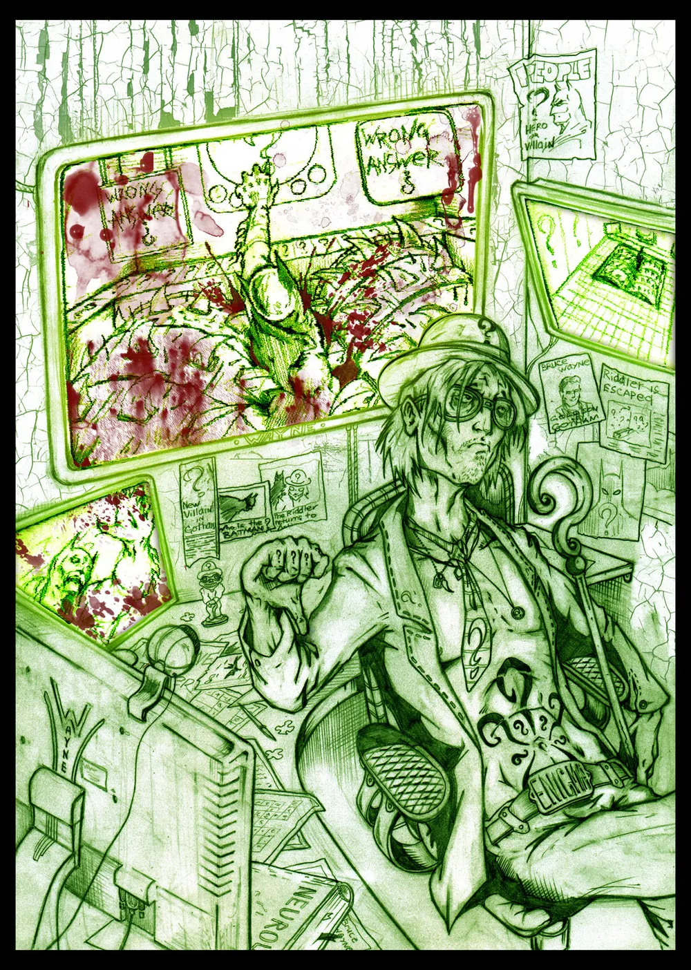 Так же, ваш покорный слуга, фее "ваш покорный слуга", что за... задал Стасу несколько вопросов. Т.к это недо-интервью, то я просто расскажу вам, что: Автор работ считает, Batman: Arkham Asylum лучшей игрой на данный момент. " Она совершенна :)". Но игра не повлияла на работы, т.к. идея была за долго до неё. По времени рисунки занимают от двух часов до трёх дней :D "Сколько по времени рисую, тоже сказать не могу. По-разному. Макси Зевса например я 3 дня рисовал. А Соломона Гранди 2 часа. " Всё нарисовано простым карандашом! "не цветным. просто простым карандашом:) цвет на скане добавлял уже." И так же Станислав ждёт вторую часть. "Конечно жду, я ж адекватный человек:)"