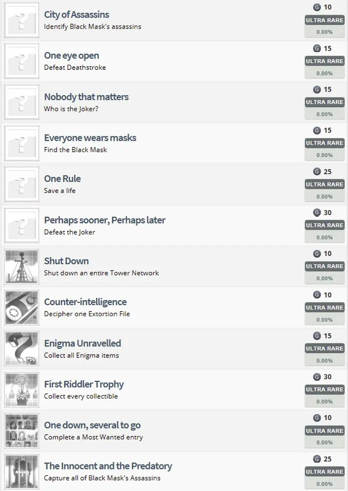Был объявлен список достижений для Arkham Origins. И из него можно сделать два вывода: Первый - мы снова увидим Риддлера. И второй: очередным наемным убийцей станет Леди Шива.