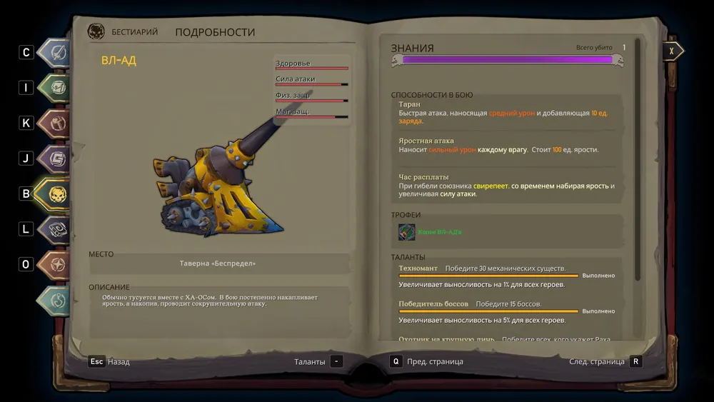 Таким образом вы разбудите Голод, который естественно захочет вами закусить. 27 уровень и 17к хп оказались не под силу мои героям 25 уровня. Потому пришлось ещё под качаться и прийти к нему второй раз. Эта ненасытная сущность имеет очень неприятную особенность, а именно наращивает атаку до неимоверных цифр. Сожрать героя с 7к здоровья за один укус - такого до него никто не проделывал. В общем, тут надо влит в него как можно больше урона за короткий период времени. И здесь нам помогут могучий удар Гаррисона 3 уровня и удары Галли, который наносят урон в процентах от своего потерянного здоровья или от имеющегося здоровья врага. Так же Рыжая Моника, которая может наносить большой урон за счет критов и невидимости. В итоге с демона мы получим часть от легендарного оружия для Алюмона. А охотница выдаст нам том "Интервью с вампиром" о зачарованиях предметов.