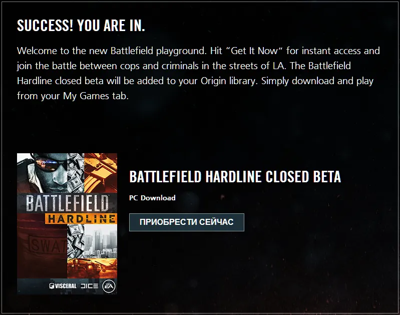 В официальном блоге Battlefield разработчики сообщили об открытии мгновенного доступа к бете BF Hardline для всех пользователей ПК и Playstation 4.
