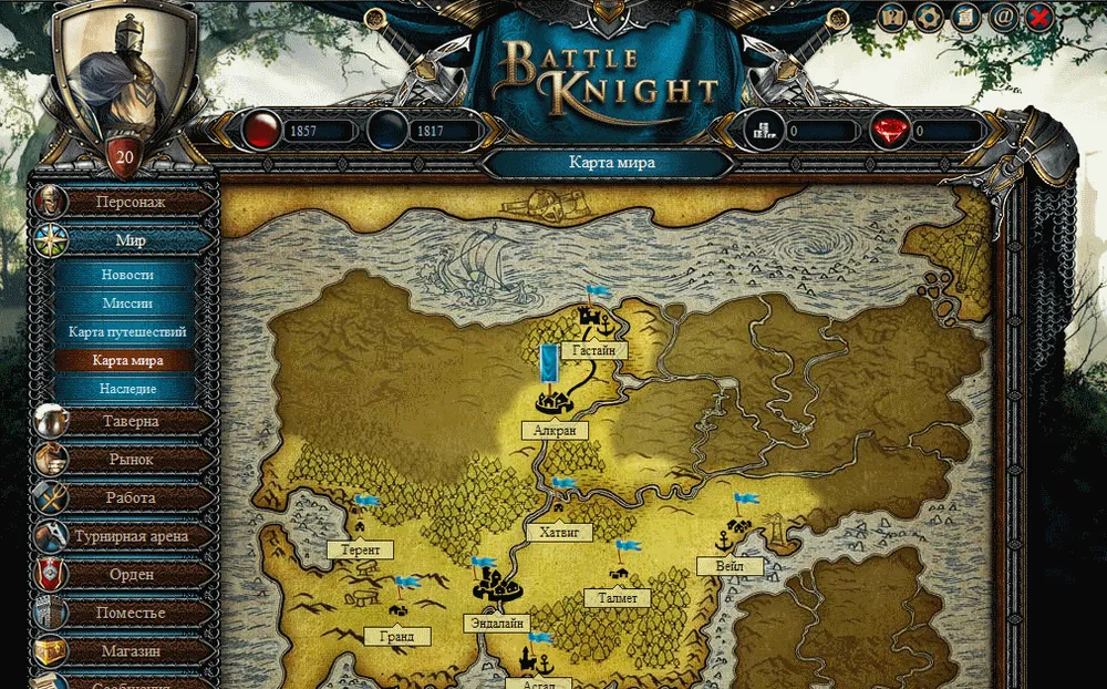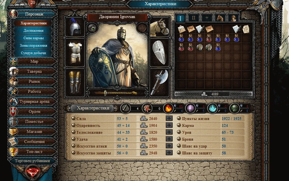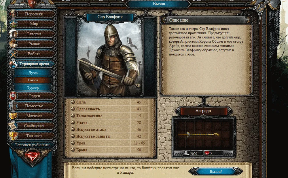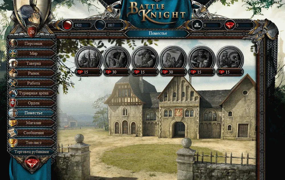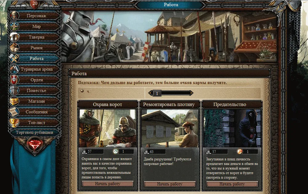В этой игре можно не только воевать, но и оправить своего рыцаря на работу. Выполнив которую, он получит плату серебром, и очки кармы: