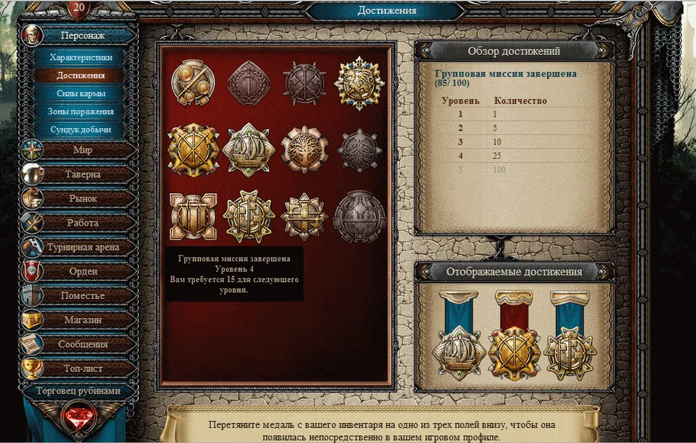 Это достижения вашего героя. Изображены в виде медалей, которые вы сможете разместить в его профиле: