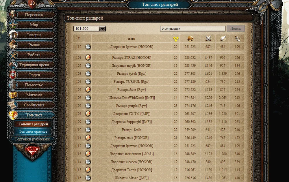 Так выглядит Топ Игроков: