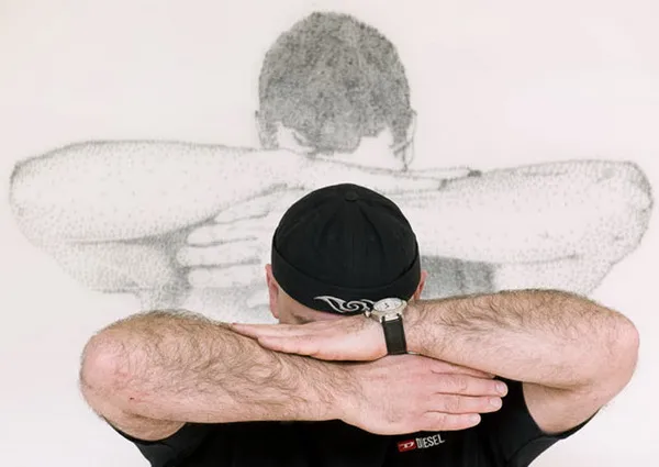 Маркус Левин с одной из своих работ, на которую ушло 26 600 гвоздей. Эта картина выставлена на продажу за 39750 долларов.
