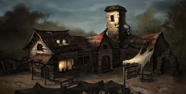 Цельный трактир разглядеть снаружи в этом длинном низком бараке, притулившемся уже за последними деревенскими хатами, если б не знал, то вряд ли смог бы даже самый глазастый из босоногих, голозадых и вечно чумазых местных детишек. Да и сквозь собственные подслеповатые окошки, забранные плохой слюдой, можно было различить только то, горит там внутри хоть или нет. А, между тем, там внутри горело. Жарко, даже летом, пылкал очаг, и на нем – чуть ли не прямо в угольях – стоял пузатый никогда не чищеный котел, в котором… И вот заради этого «в котором», в последнюю харчевню по эту сторону гор стекались из окрестных хуторов немногочисленные, но верные клиенты. Потому как хозяин, огромный в седых космах когда-то северный варвар, за медный грош предлагал огромную же, хоть и в сколах миску бобов с жиром. Да какую! Такую, что съесть ее в один присест, не отодвинувшись, устало, набитым брюхом от грубо сколоченного стола, мог разве что только он сам.