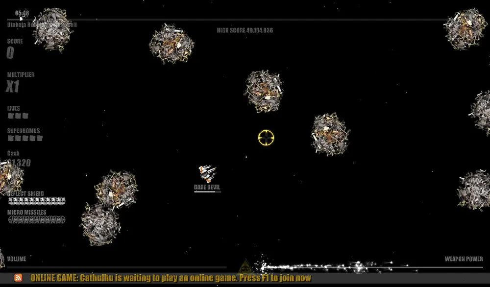 Астероиды (ака Asteroids) - обычная куча непонятно чего, свободно летающая на экране. При стрельбе по нему делится на несколько маленьких кусочков, которые разлетаются в разные стороны с небольшим ускорением. В больших скоплениях астероидов АБСОЛЮТНО ПРОТИВОПОКАЗАНО использовать супербомбу или микро-ракеты. Только щит и "распылитель", можно усилить "распылитель" Ультра Лучом.
