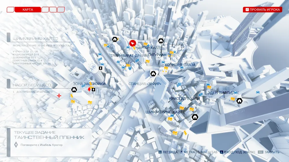 Для желающих попробовать себя в геймдизайне на просторах Города Зеркал разработчики прямо в игру вшили инструмент для создания своих собственных забегов на время, доступных любым другим игрокам. Это, конечно, не редактор для пользовательских карт, но хоть какое-то поощрение творческих фанатских порывов. Для желающих же просто отметиться и заявить о себе миру предусмотрена функция оставления маячков, тоже видимых всем-всем-всем. Более того, обнаружение чужих маячков – это, по сути, еще одна статья коллекционирования. Опыта за них, понятное дело, не дают, но в вашем профиле в мобильном приложении «Mirrоr's Еdgе» они будут упомянуты, как, впрочем, и взломанные щиты, и пройденные рывки с забегами.