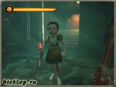 Ничего не напоминает? Ах да, одна из маленьких сестричек всё таки выбралась из тонущего города) Это пила на почти полностью повторяет большой шприц, который носили Маленькие сестрички в игре BioShock. Если не верите ( или не играли ) то вот доказательства.