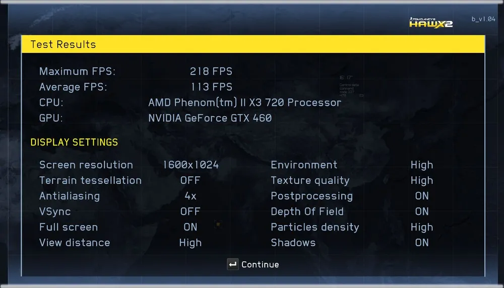 Вот если взять сравнительно свеженький тест HAWX2, видеокарточку GeForce GTS 460 от MSI, то получится такой результат, как на картинке: