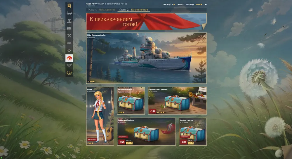 Коллаборация с визуальной новеллой «Бесконечное лето» является частью большой активности «Наше лето». Во вторую неделю обновления 13.7 игроки смогут также приобрести новый японский эсминец VIII уровня Mika в очаровательном летнем камуфляже «Пионерский». Этот корабль оснащён большим количеством торпед с высоким уроном, что делает его особенно опасным в бою.