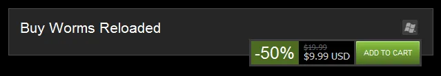- Скидка 50% на Worms Reloaded в магазине Steam. (продлится до конца выходных)
