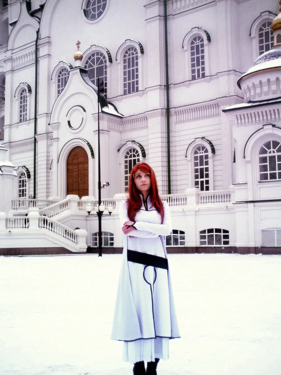А это косплей Орихимэ Иноуэ от девушки из Воронежа Екатерины "Ichiro-fuumi" Гнедаш. К сожалению, фотографии не очень хорошего качества, но это не отменяет того факта, что Екатерине косплей удался.