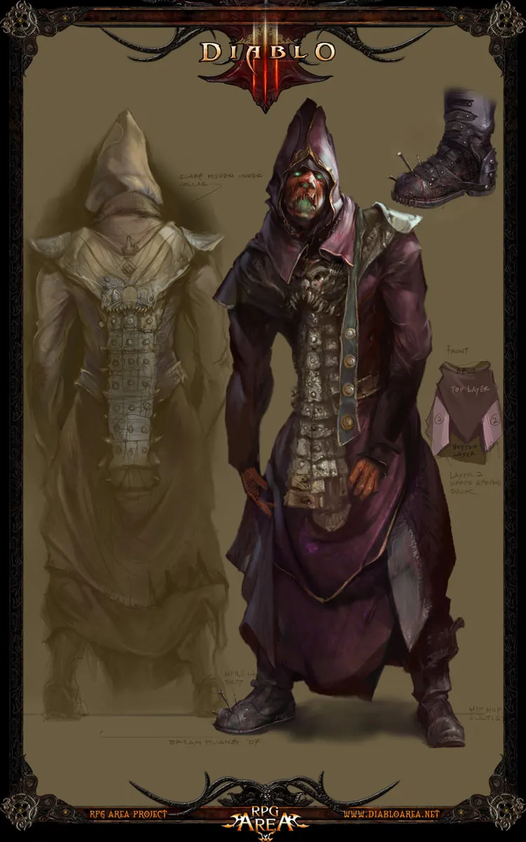В глуши ночью можно найти лишь кромешную и подавляющую тебя тьму. Поэтому когда я, пробираясь через густой лес Тристрама, увидел вдалеке огонь костра, то лишь обрадовался предстоящей встрече с собратьями-путниками. Однако когда я приблизился, то ощутил нечто еще более темное, чем даже мрак леса. Это ощущение было настолько пугающим, что я хотел развернуться и убежать, однако меня привлекли звуки странного песнопения, заставив идти вперед. Я не знаю, каких богов благодарить за то, что мне хватило рассудка остановиться перед входом в это нечестивое место, откуда доносилось песнопение. Вместо этого я нашел хорошо укрытое место, откуда я мог видеть безжизненную, словно бы выжженную в глубине леса поляну.