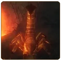 Гигантские скорпионы, подобно вышеописанным бронтокам - порождения Подземного мира. Тяжелая жизнь в условиях постоянного жара и почти полной темноты сделала их панцири невероятно твердыми, жала - острыми, как бритвы, а глаза - совершенно слепыми. Впрочем, скорпионы прекрасно ориентируются и без них.