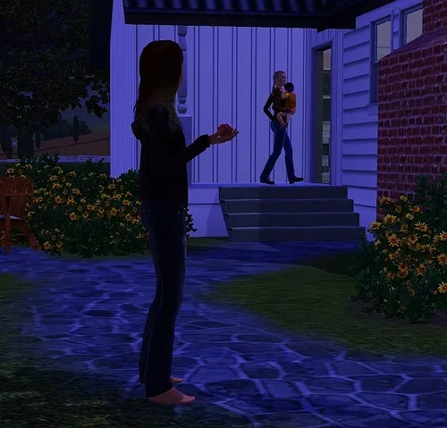Всё это ново для неё и конечно она чувствует себя немного неловко. Сидеть на диване, смотреть движущиеся картинки и не спеша разговаривать. И никто не скажет, что она ведет себя не подобающе нормальному симу. Её напряжение и усталость исчезли уже к полудню. Так она не расслаблялась со времен своего детства.