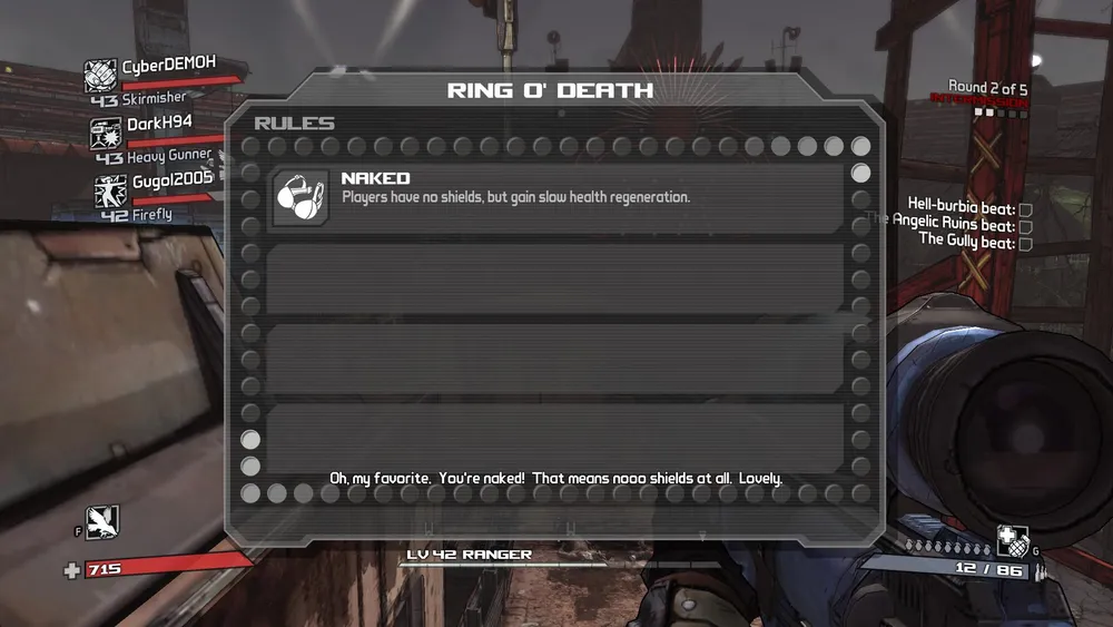 Это дополнение — практически полная противоположность предыдущему. На острове мы разгадывали загадки, ввязывались в приключения, находили что-то новое. У Мокси же есть три арены, на которых и происходят битвы — ничего больше. Помните, как еще на самой первой локации нас заталкивали в загон, а потом спускали скагов. Первый раунд, второй, третий. И так, пока не завершим квест, не получим много опыта, денег и клевое оружие.