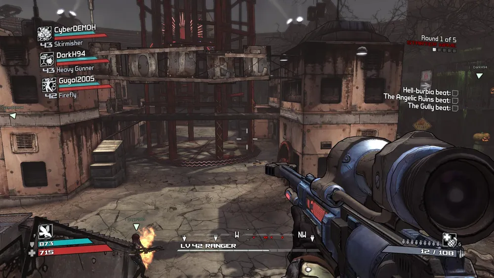 Но сначала все сражения выглядят довольно бодренько. Много противников, попытки играть командой. Мы даже Modern Warfare 2 вспомнили. Позиции начали занимать. Типа, берсерк и сирена впереди, снайпер сидит где-нибудь на крыше, солдат бегает сзади и всем дарит пули добра (лечит). Причем сперва ничего не получается, потом мы уже начали понимать, как действует враг, как можно помогать друг другу и что надо предпринимать для победы. Я не слукавлю, если скажу, что Мокси нас многому научила. Если бы мы потом продолжили игру на обычных локациях, то бились бы уже гораздо сыграннее.