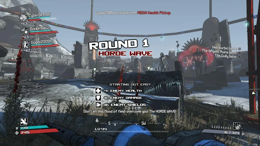 Разнообразие, по идеи, должны внести случайные эффекты, которые действуют всю волну. Например, противники быстрее регенерируют, снайперские винтовки наносят больше урона, игроки остаются без щитов. На деле — 90% эффектов никак не влияют на геймплей. Действительно интересно играть, когда все ускоряются или с нас срывают щиты, а вот остальные over 9000 эффектов — скучны и бесполезны.