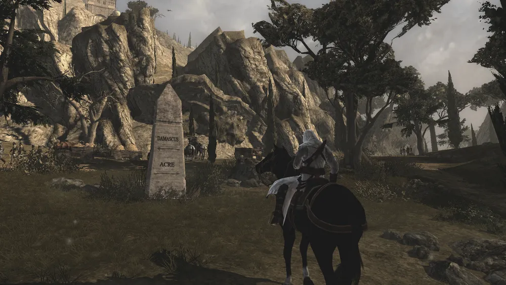 Первым делом мы, конечно, покинем Масиаф, сядем на лошадь и поскачем по единственно доступной нам дороге, пока не достигнем следующей области – Королевства. Это своего рода хаб, связывающий между собой все города. Не будем открывать карту или пользоваться GPS [то есть миникартой. – Прим. перев.]. Но как же тогда мы попадем в Акру? Ну, по большому счету ничего сложного тут нет.