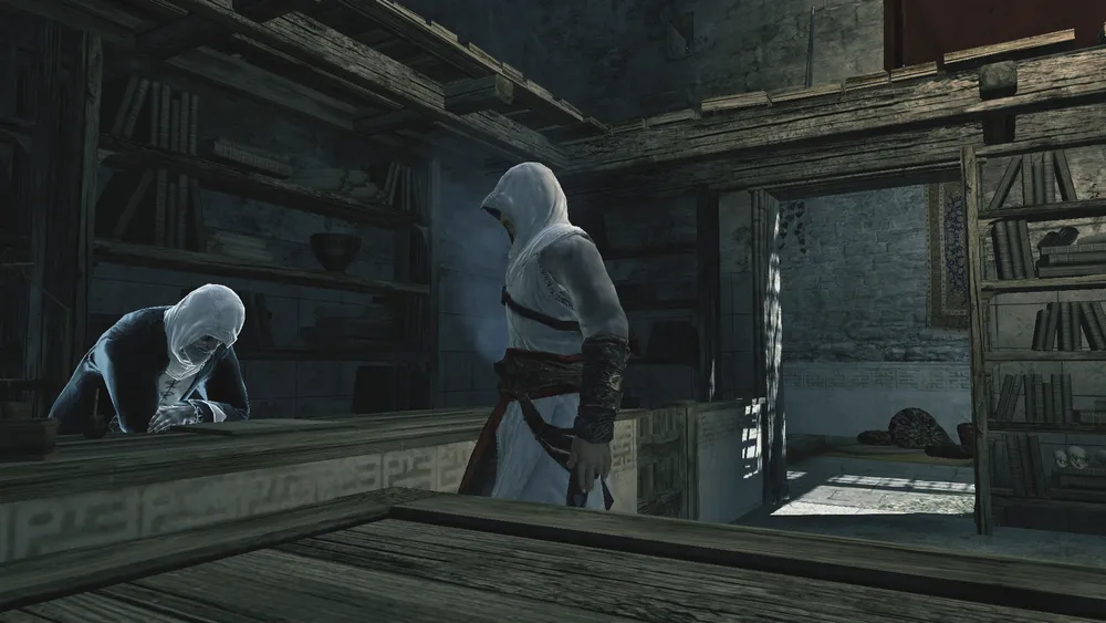 Вплоть до выхода «Черного флага» первый Assassin’s Creed был моей любимой игрой в серии. Но даже в «Черном флаге» нет того, что делает первую часть действительно особенной. Этого нет ни во второй части, ни в «Братстве Крови», ни в «Откровениях», ни в третьем «Ассасине», ни в «Единстве», «Синдикате» или «Изгое». Мне могут возразить: «Конечно, Стас, в первом Assassin’s Creed присутствуют интересные идеи, потрясающая атмосфера и история, он заложил основы франшизы, но он же однообразный и скучный. Разве последующие игры не лучше в разы?» Ну, в чем-то да. А в чем-то и нет. В конце концов, «ничто не истинно и все дозволено». В первом Assassin’s Creed есть одна фича, обеспечивающая такой уровень погружения, которого невозможно достичь ни в одном из сиквелов. Я имею в виду безынтерфейсный дизайн.
