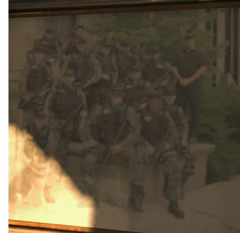 У Адама на квартире, в полицейском участке и в некоторых квартирах Дейтройта мы можем найти снимок отряда Адама, когда он еще не был расформирован: