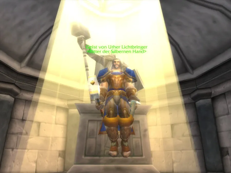Утер жил и умер, для того, что бы защитить королевство Лордаерон. Хотя он был предан его самым любимым учеником, дух его жив вечно. Он продолжает следить за нами, как раз тогда, когда тени окружают нашу разрушенную землю. Его свет - свет всего человечества - и пока мы следуем его пути, он никогда не исчезнет"