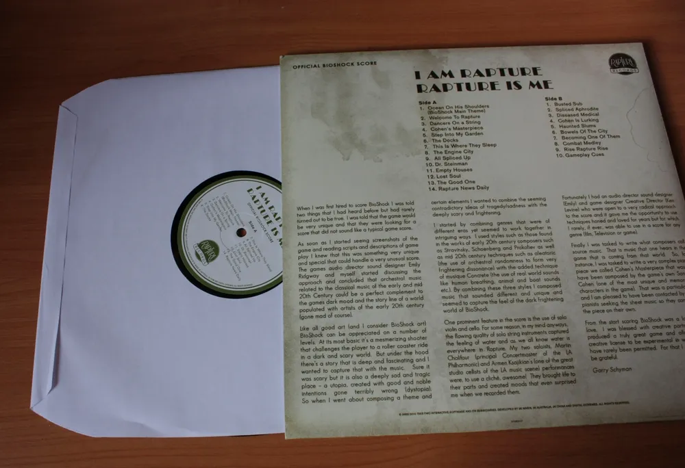 Артбук великолепен, но есть у меня еще кое-что из комплекта Special Edition. Это оценят не все, но ценность этой вещи огромна – виниловая пластинка с саундтреком BioShock 2. Добавить нечего, смотрите фотографии: