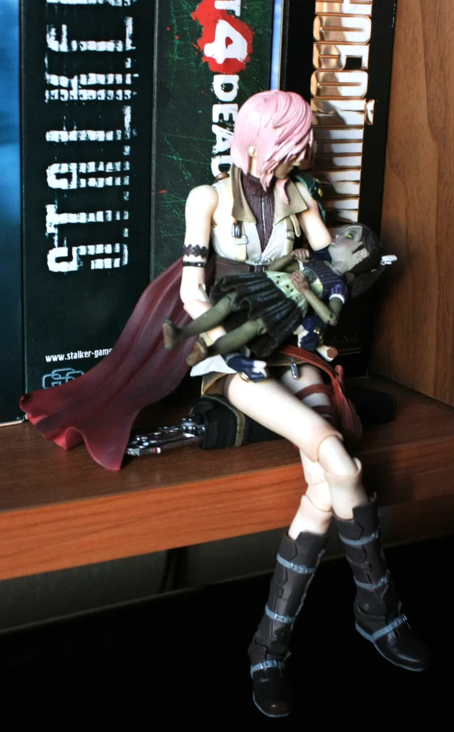 Если кто не узнал, это Lightning из Final Fantasy XIII. Такой вот союз Востока и Запада, фантазии и утопии, теперь украшает мою полку. Смотрятся вместе отлично, согласитесь.
