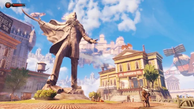 Bioshock Infinite: Летающий город Колумбия представляет собой великолепное сплетение из дизайна, архитектуры и стиля. Очень яркие цвета и мягкие лучи солнца лишь обнажают гнилость этого города; экспансионистские намерения американцев и повсеместный расизм отделяют богатых и бедных и часто это делается жестоко. Этот город - летающее противоречие, сочетание из фальшивых обещании и их красоты и ужасной правды, что лежит за внешней красотой.